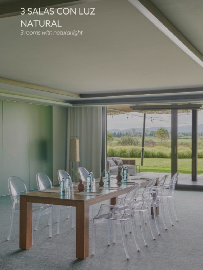 Seis salas para que elijas la que mejor se ajuste a tus necesidades. Luminosas, con conexión wifi, vistas exteriores al golf y acceso directo a los jardines, sus salas son adaptables a cualquier tipo de disposición y formato.
