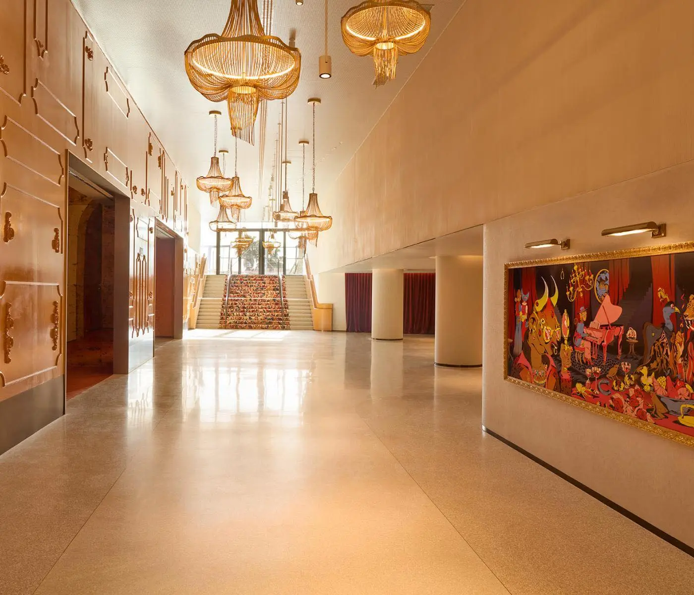 Entre ellos destaca un enorme salón de baile de casi 800m2 con luz natural y un vestíbulo dedicado a eventos que conduce a 8 salas privadas, que pueden alquilarse individual o colectivamente a petición.