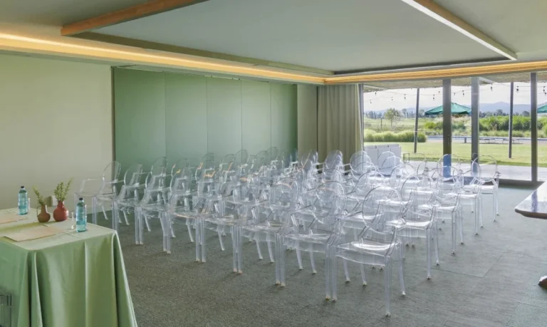 Seis salas para que elijas la que mejor se ajuste a tus necesidades. Luminosas, con conexión wifi, vistas exteriores al golf y acceso directo a los jardines, sus salas son adaptables a cualquier tipo de disposición y formato.